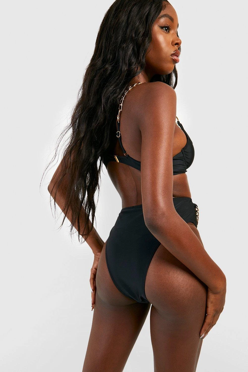Bikinihose Mit Hohem Bund Und Goldenem Ketten-Detail