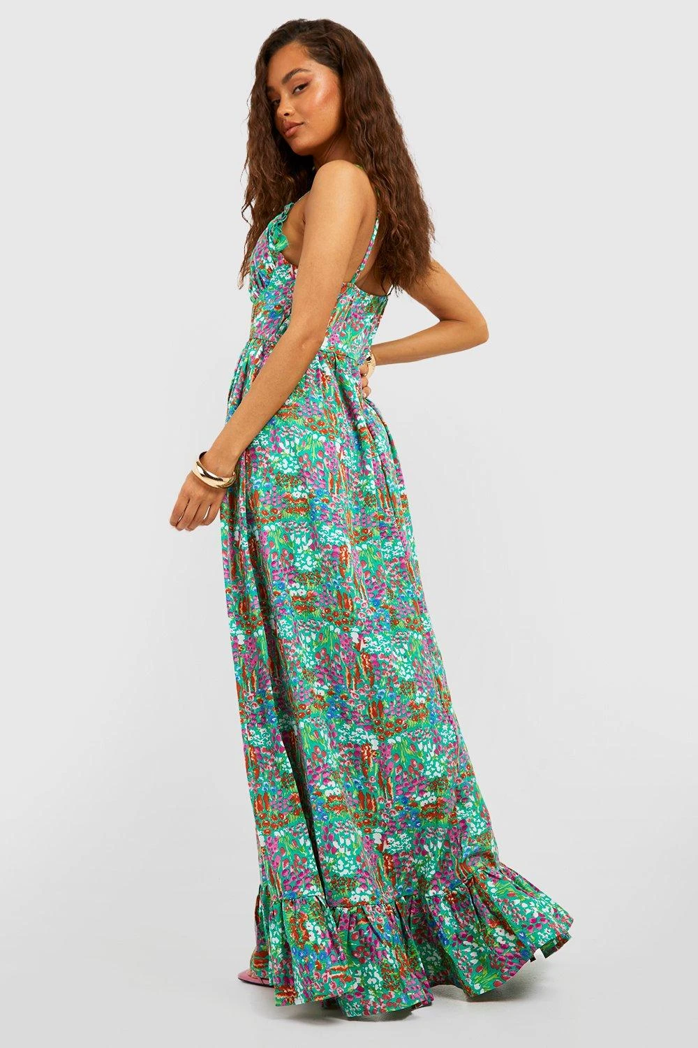Florales Maxikleid Mit Geraffter Brust Und Rüschensaum