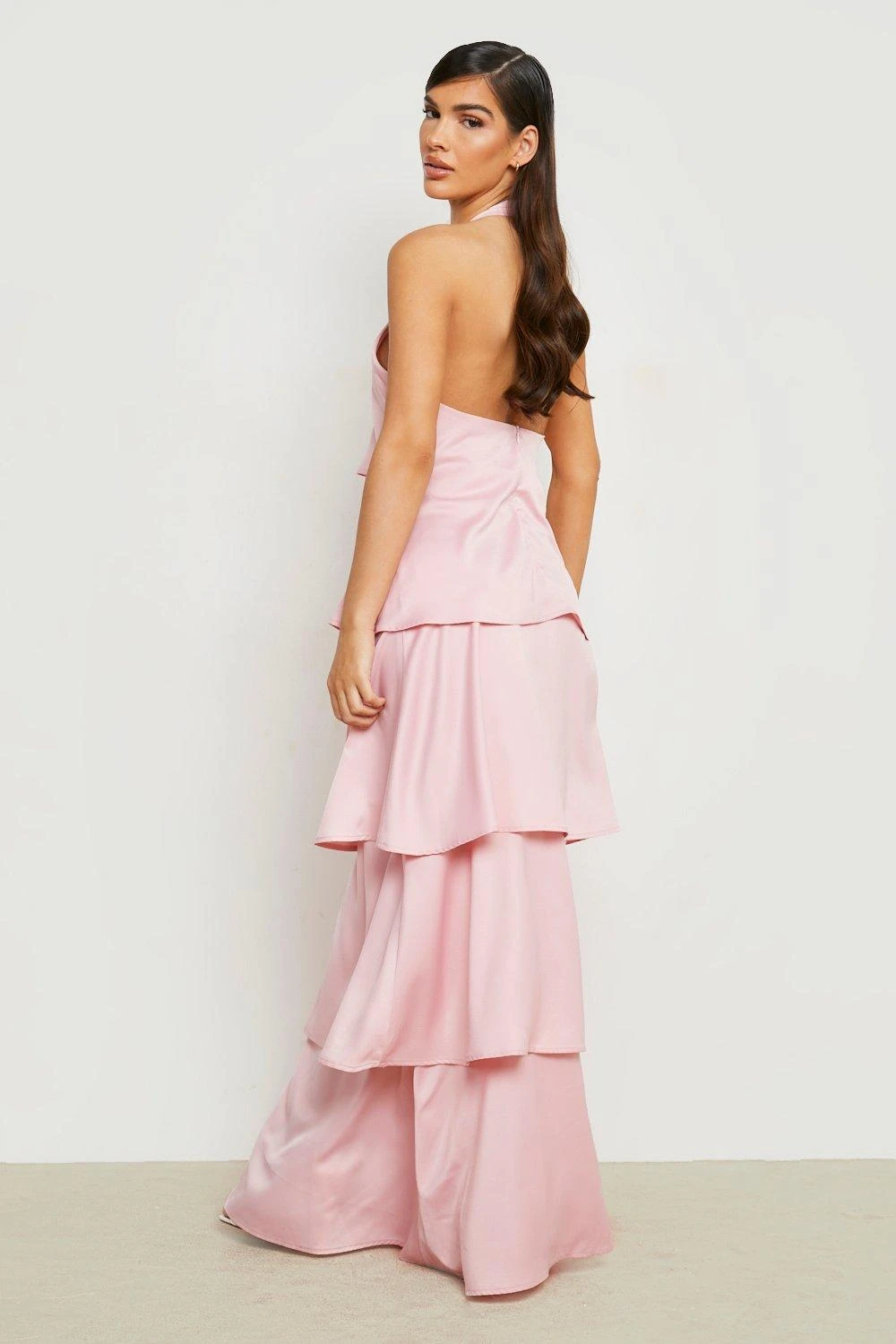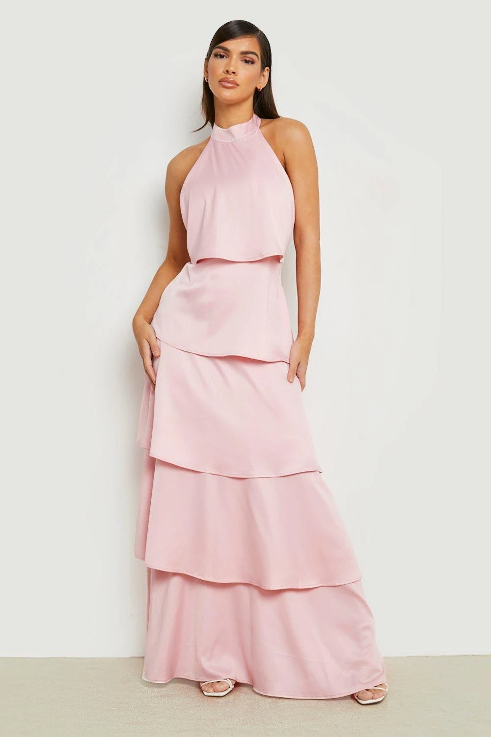 Gestuftes Neckholder-Maxikleid Aus Satin