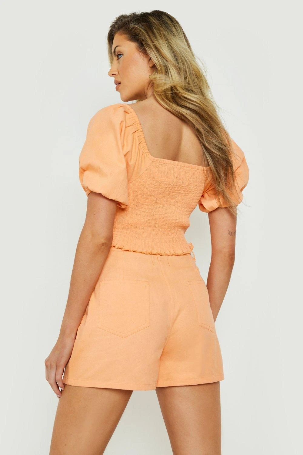 Jeansshorts Mit Hohem Bund Und Bundfalte