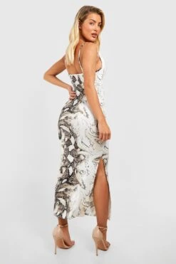 Midikleid Mit Wasserfallausschnitt Und Schlagenprint