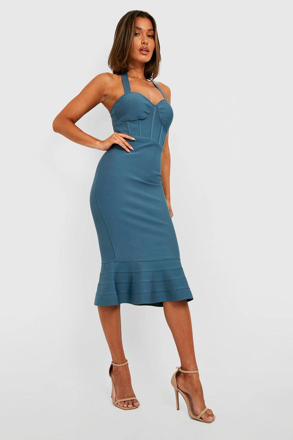 Korsett Bandagen-Midikleid Mit Rüschensaum