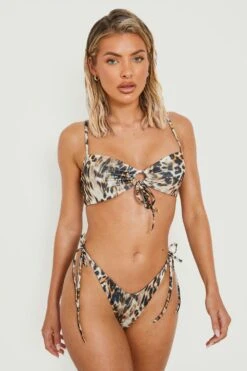 Leopardenprint Bikinioberteil Mit Schnür-Detail