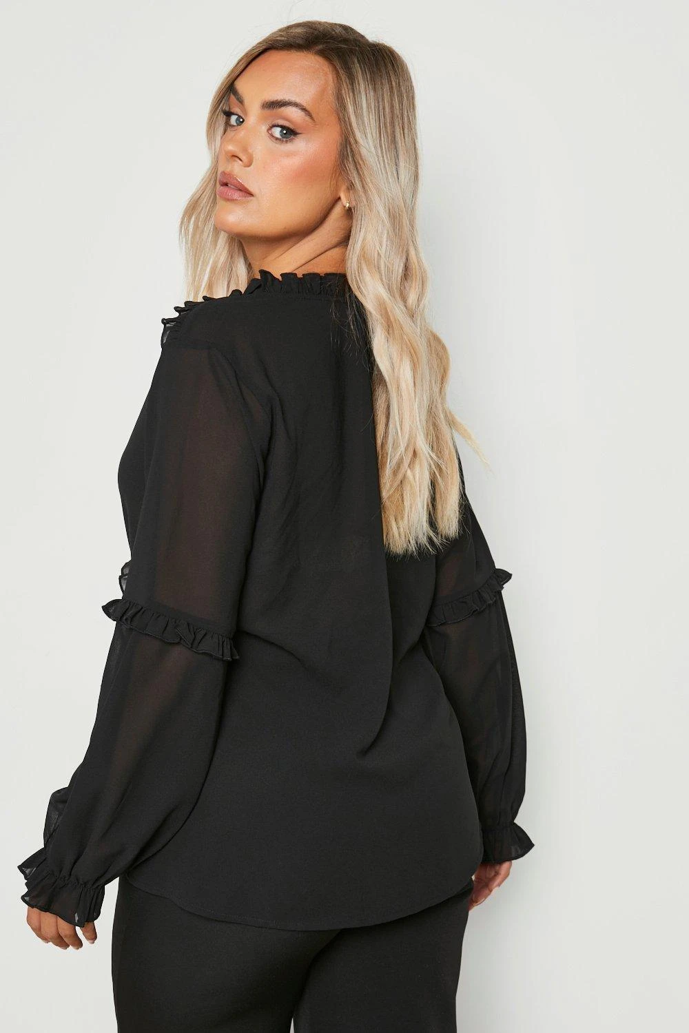Plus Bluse Mit Tiefem Ausschnitt Und Rüschen-Detail