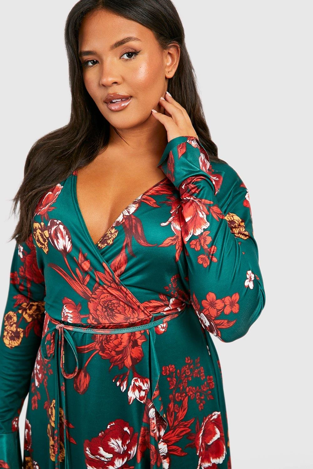 Dieses Plus Size Wickelkleid wird sofort zu deinem neuen Lieblingsteil. Mit einem Wickeldesign, das deine Taille betont und einen V-Ausschnitt kreiert, ein Plus Wickelkleid hat einen Platz in deiner Kleiderkollektion verdient. Egal, ob du florale Styles, dezentes Schwarz oder auffälliges Rot für Date Nights liebst – umschmeichle deine Kurven in diesem Kleid.