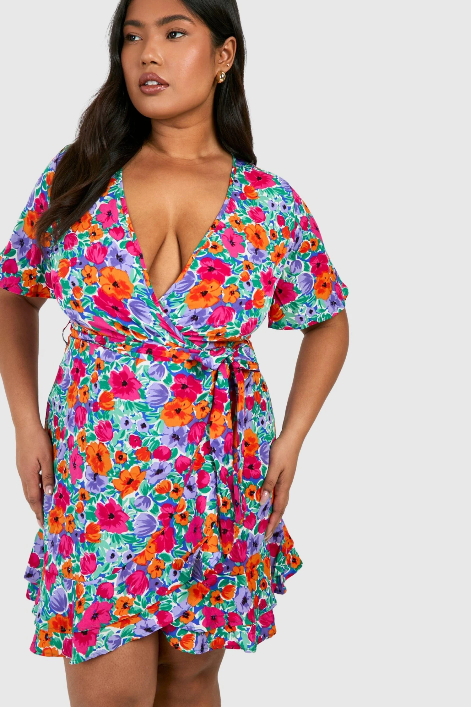 Dieses Plus Size Wickelkleid wird sofort zu deinem neuen Lieblingsteil. Mit einem Wickeldesign, das deine Taille betont und einen V-Ausschnitt kreiert, ein Plus Wickelkleid hat einen Platz in deiner Kleiderkollektion verdient. Egal, ob du florale Styles, dezentes Schwarz oder auffälliges Rot für Date Nights liebst – umschmeichle deine Kurven in diesem Kleid.