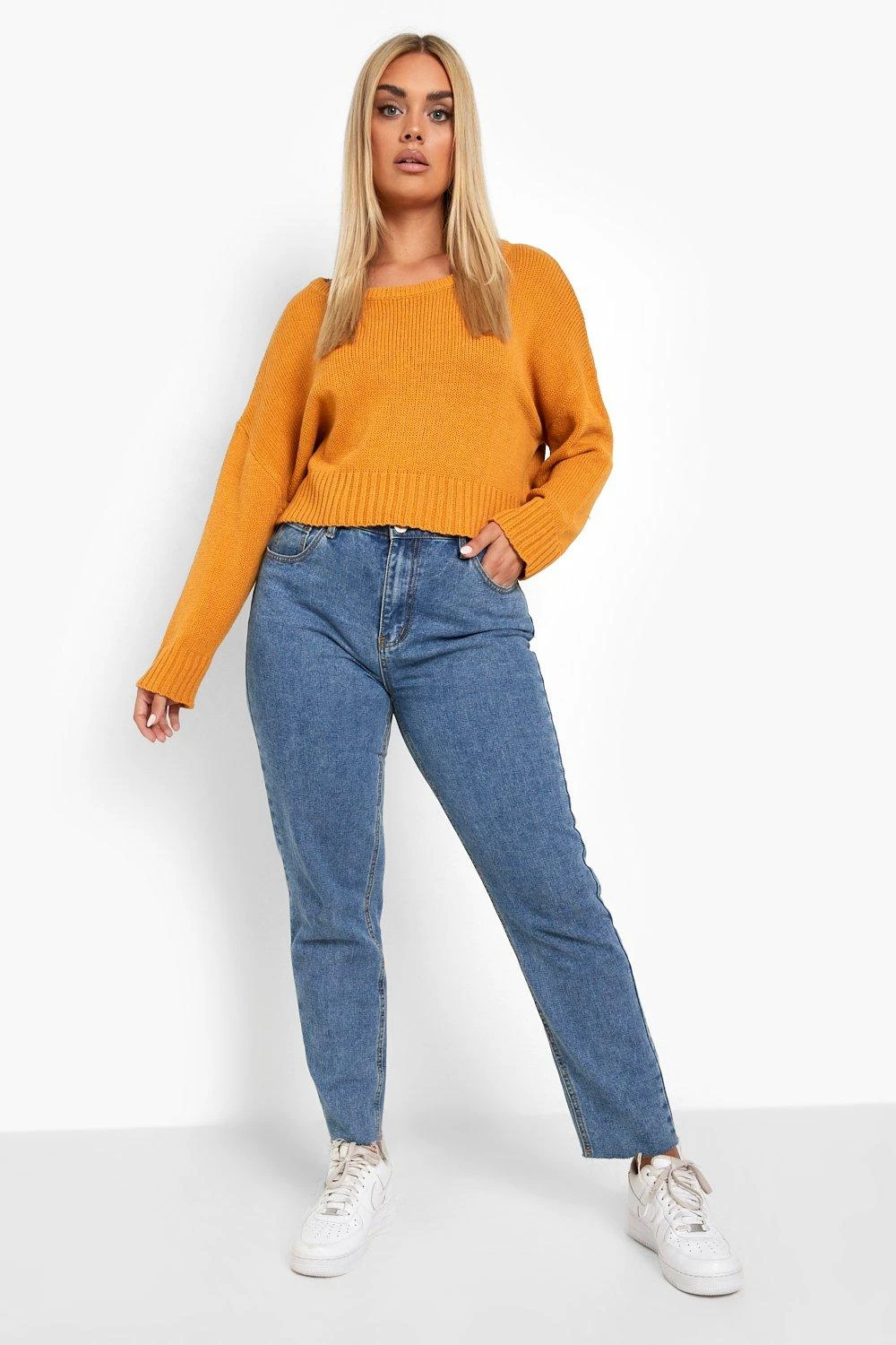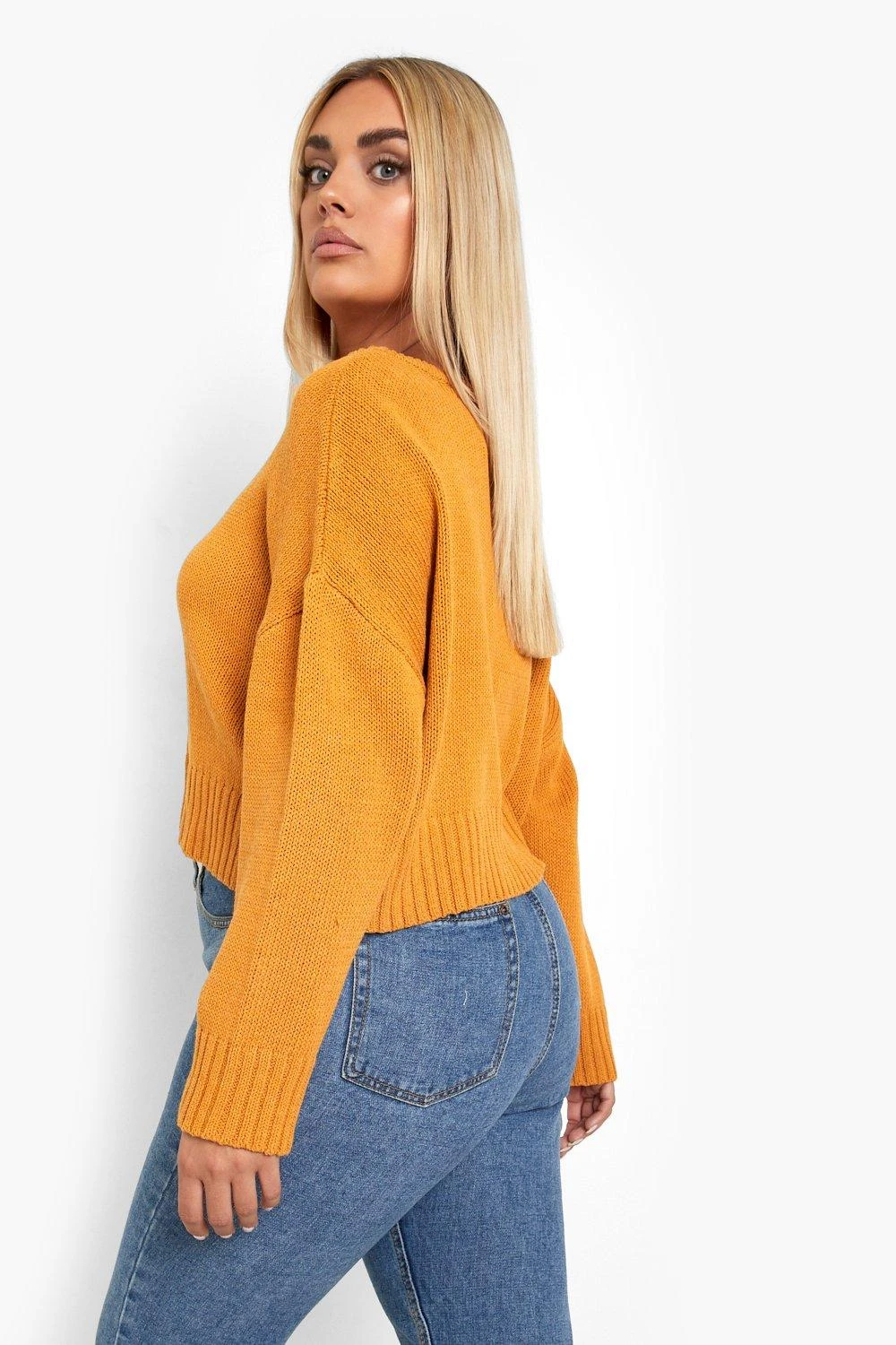Mit diesem Plus-Size-Pullover aus unserer neuesten Strickkollektion ist es ganz einfach, deine Winterlook aufzuwerten. Er hält dich mit seinem weichen Stoff und seiner gestrickten Textur kuschelig warm und eignet sich perfekt zum Schichten über all deine Outfits, egal ob es sich um deine Lieblingsjeans oder ein Smokkleid handelt. Mit langen Ärmeln, die sich perfekt für das Styling bei kaltem Wetter eignen, sorgt dieser Stil all die gemütlichen Vibes. Schnapp dir in dieser Saison einen Plus Size Oversize Pullover, um deine Winter-Mode auf das nächste Level zu bringen – kombiniere ihn einfach mit klobigen Stiefeln und einem Mantel.
