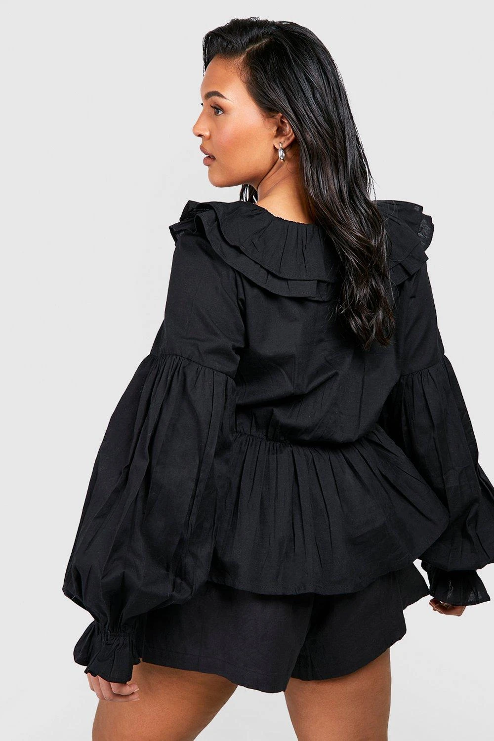 Plus Leinen Rüschen-Bluse Mit Schnür-Detail