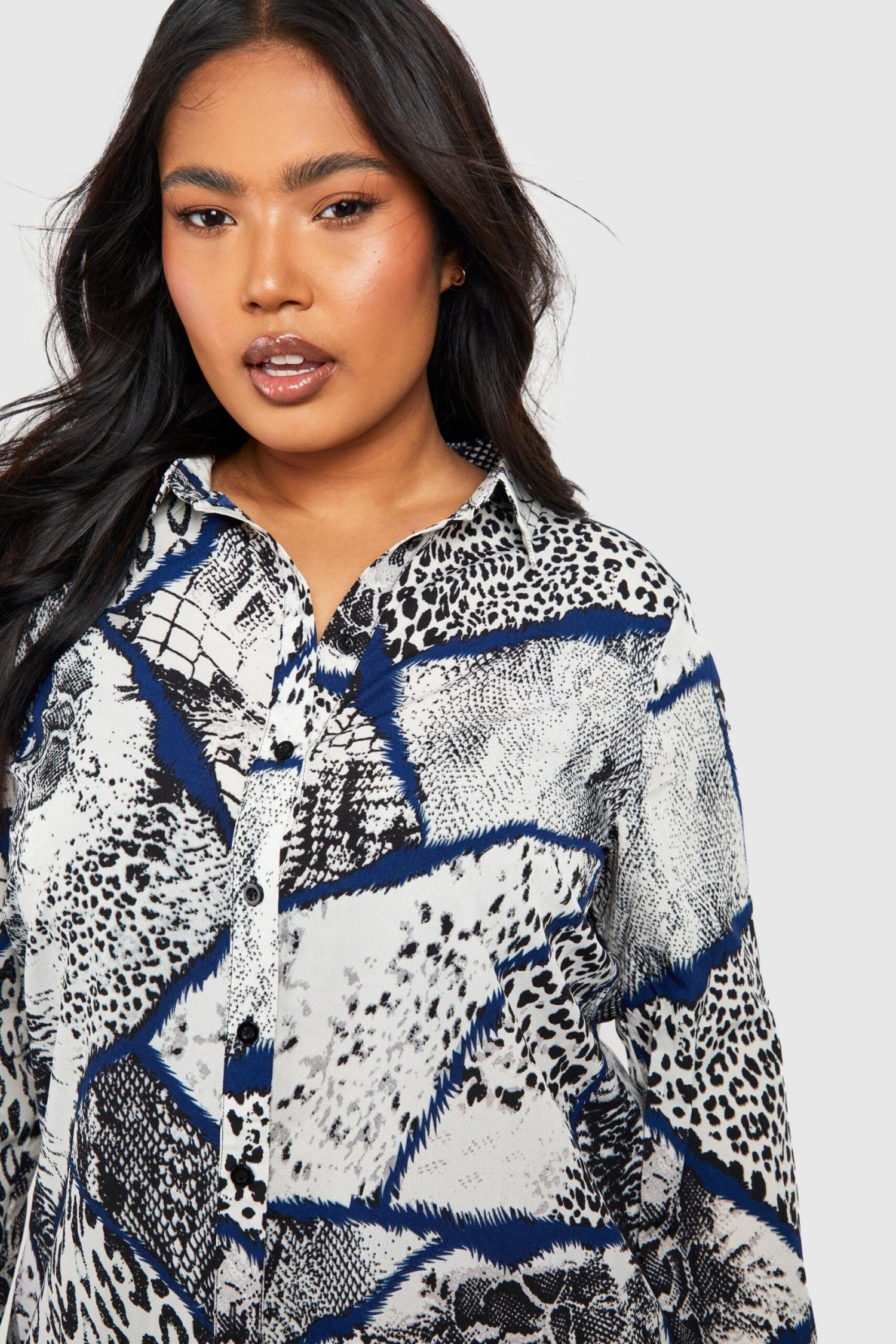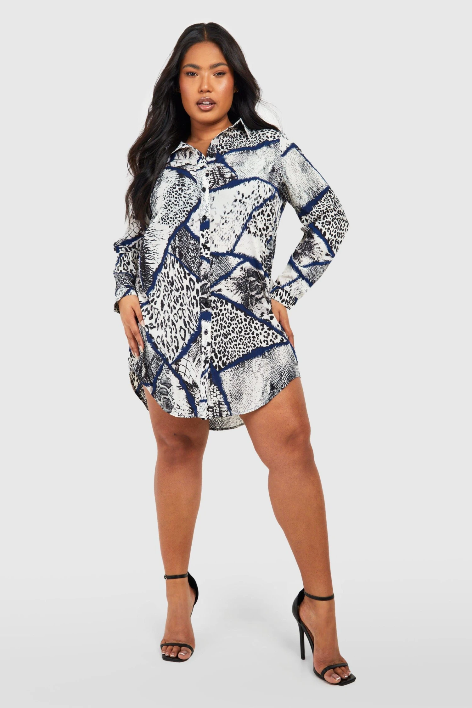 Plus Oversize Hemd-Kleid Mit Schlagenprint