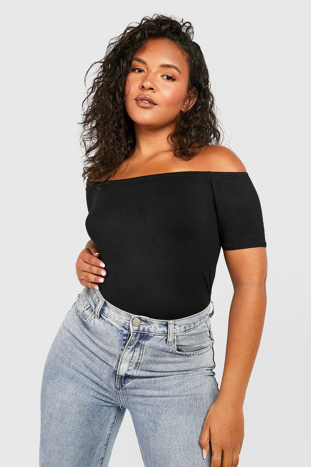 Plus Schulterfreies Basic Crop Top Mit Kurzen Ärmeln