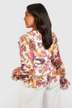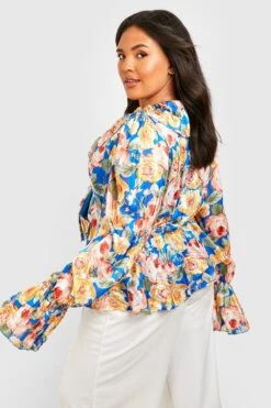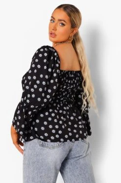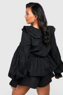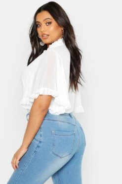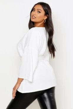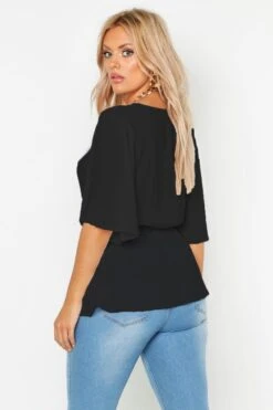 Plus Bluse Mit Tiefem Ausschnitt, Knopf-Detail Und Weiten Ärmeln