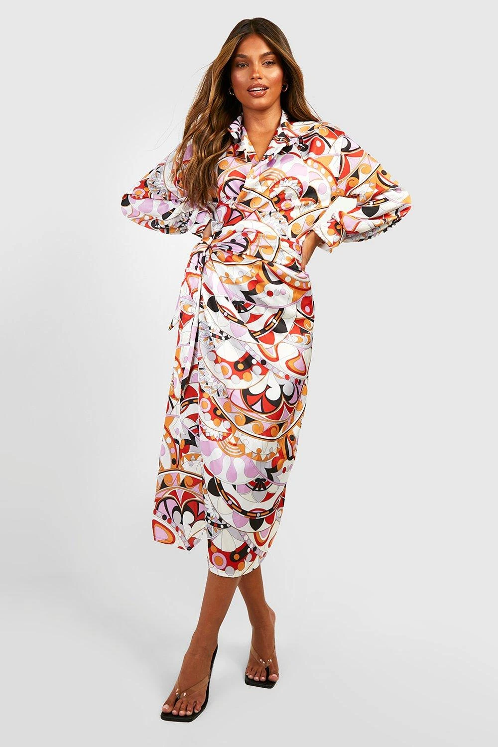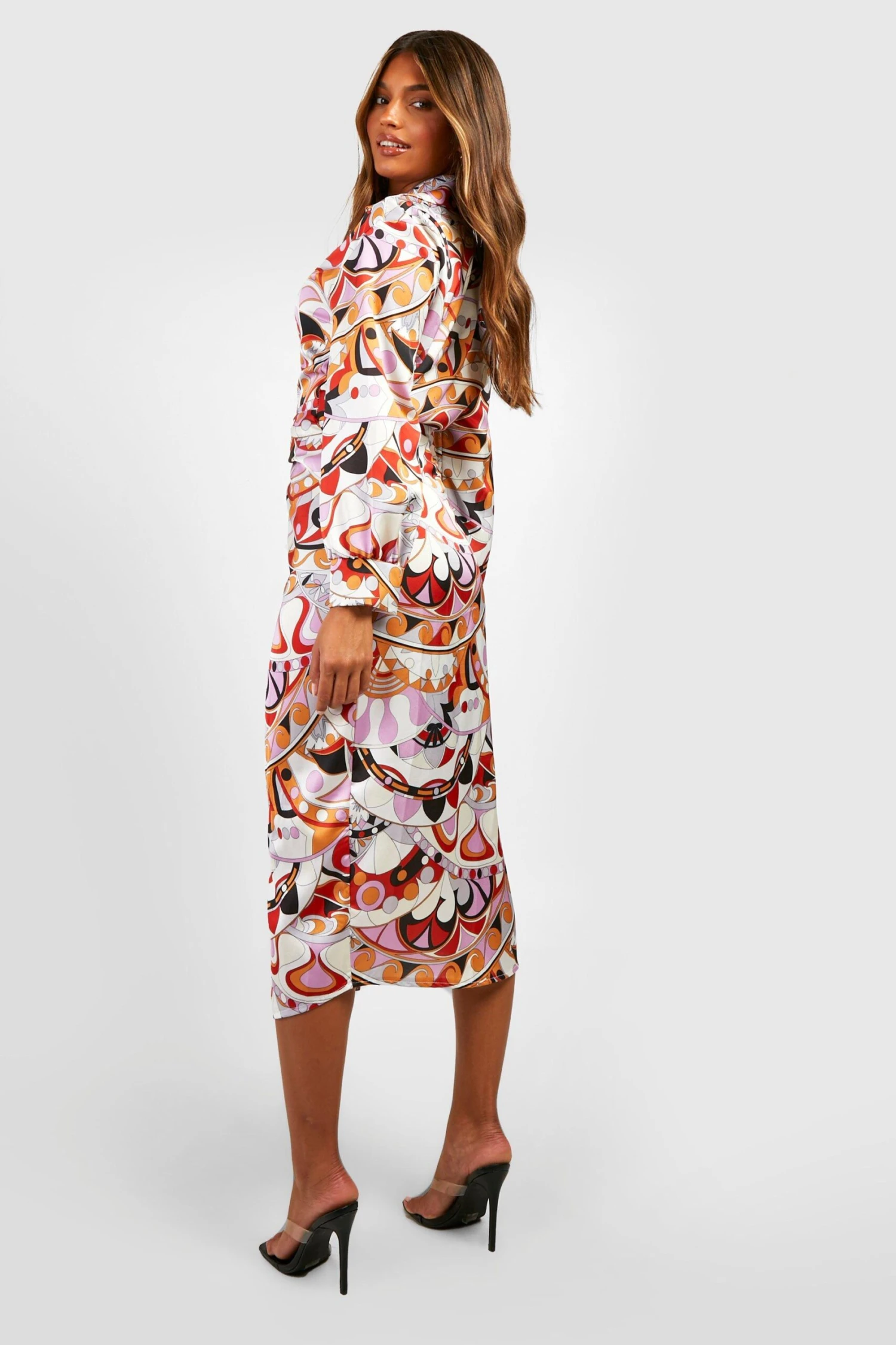 100% Polyester. Wash with similar colours. Model Wears UK Size 10.