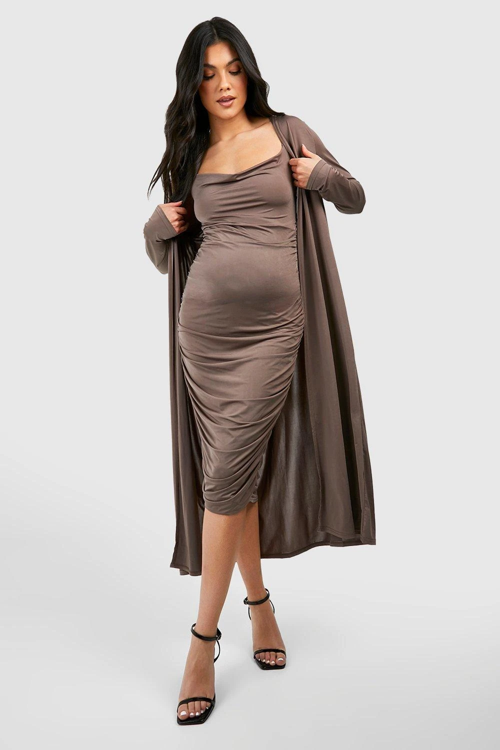 Mit diesen stylischen und bequemen Umstandsmode-Kleidern kannst du nichts falsch machen. Kreiert um dir und deinem wachsenden Babybauch perfekt zu passen, sind unsere pregnancy dresses mit mehr Platz in der Mitte designt. Von Umstandsmoden Smokkleidern zu Umstandsmoden Kleider für besondere Anlässe, wir haben einen Style für jeden Anlass. Style es mit Sandalen und schlichtem Schmuck und los geht‘s! Du magst es lieber casual? Kombiniere es mit Platform-Sneakern und einer Jeansjacke für einen lässigen, coolen Look. Süß und bequem.